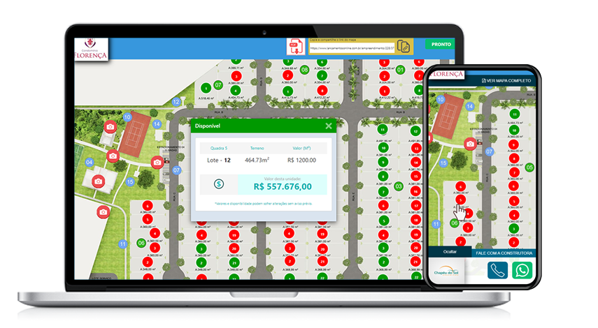 Compartilhe o mapa interativo em tempo real com seus clientes e corretores: